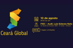 A FIEC sediará no dia 10 de agosto o Ceará Global, evento sobre a internacionalização da economia do Ceará. Na pauta, a expansão das exportações e a atração de investimento externo direto. O evento é uma iniciativa conjunta da Câmara Temática Estadual de Comércio Exterior e Investimento Estrangeiro, Câmara Brasil Portugal no Ceará e Federação das Indústrias do Estado do Ceará. Conta também com o apoio do SEBRAE, Junta Comercial do Ceará, Federação das Câmaras de Comércio Exterior e do Grupo de Comunicação O Povo.