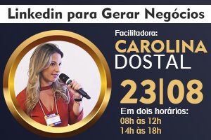 Serão 4 horas de conexão intensa com a especialista em Linkedin, Carolina Dostal, que falará sobre os principais recursos que a ferramenta disponibiliza para a geração de negócios e de networking como as prospecções de novos clientes, SSI (Social Selling Index, em português IVS que significa Índice de Vendas Sociais), como tornar seu perfil campeão, marketing de conteúdos, Inmails, hand ons e posts que engajam entre outros recursos.